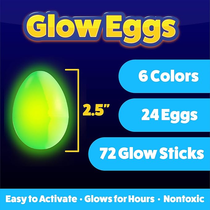 Turn any Easter egg hunt into a magical glow-in-the-dark adventure. Simply crack the mini glow sticks, place them inside the eggs, and hide them for kids to discover. Perfect for nighttime hunts, parties, and unforgettable Easter fun.